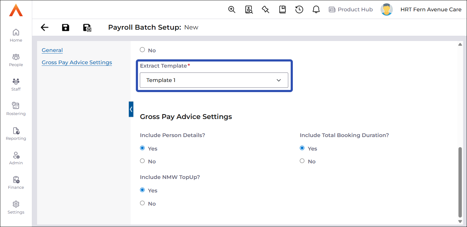 Within the Payroll Batch Setup, there are four Extract Templates available to select from. These are controlled using the Payroll Batch Setup Extract Template system setting, and set the template by default in the Payroll Batch Setup record. For each Payroll Batch Setup, you can change the Extract Template as desired. When carrying out a Payroll Export, the extract will use the defined Extract Template.