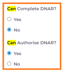 To complete a DNAR record check that the user has these set on their System User Record: